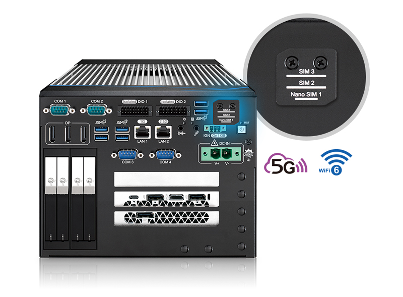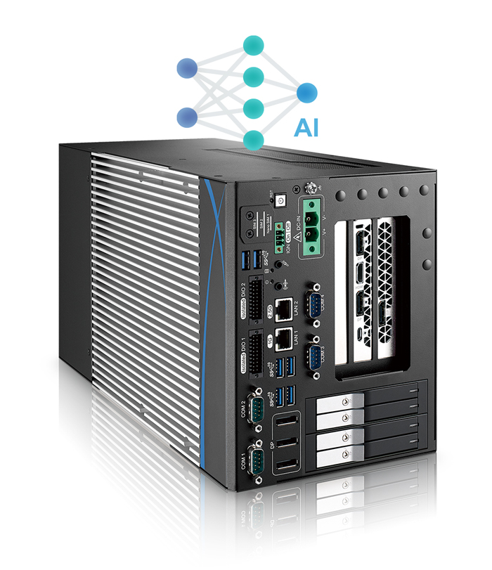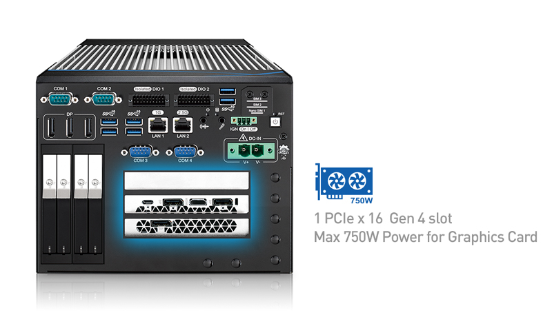 Workstation-grade Intel® Xeon®/Core™ i7/i5 Processor (Rocket Lake) AI Computing System with NVIDIA® Tesla®/Quadro®/GeForce®/AMD Radeon™ Graphics, 2 GigE LAN, 6 USB 3.2 Gen 2, 4 COM RS-232/422/485, 3 SIM, 3 PCI/PCIe Slot, 4 M.2, 16 Isolated DIO, High Performance, Flexible, Expandable